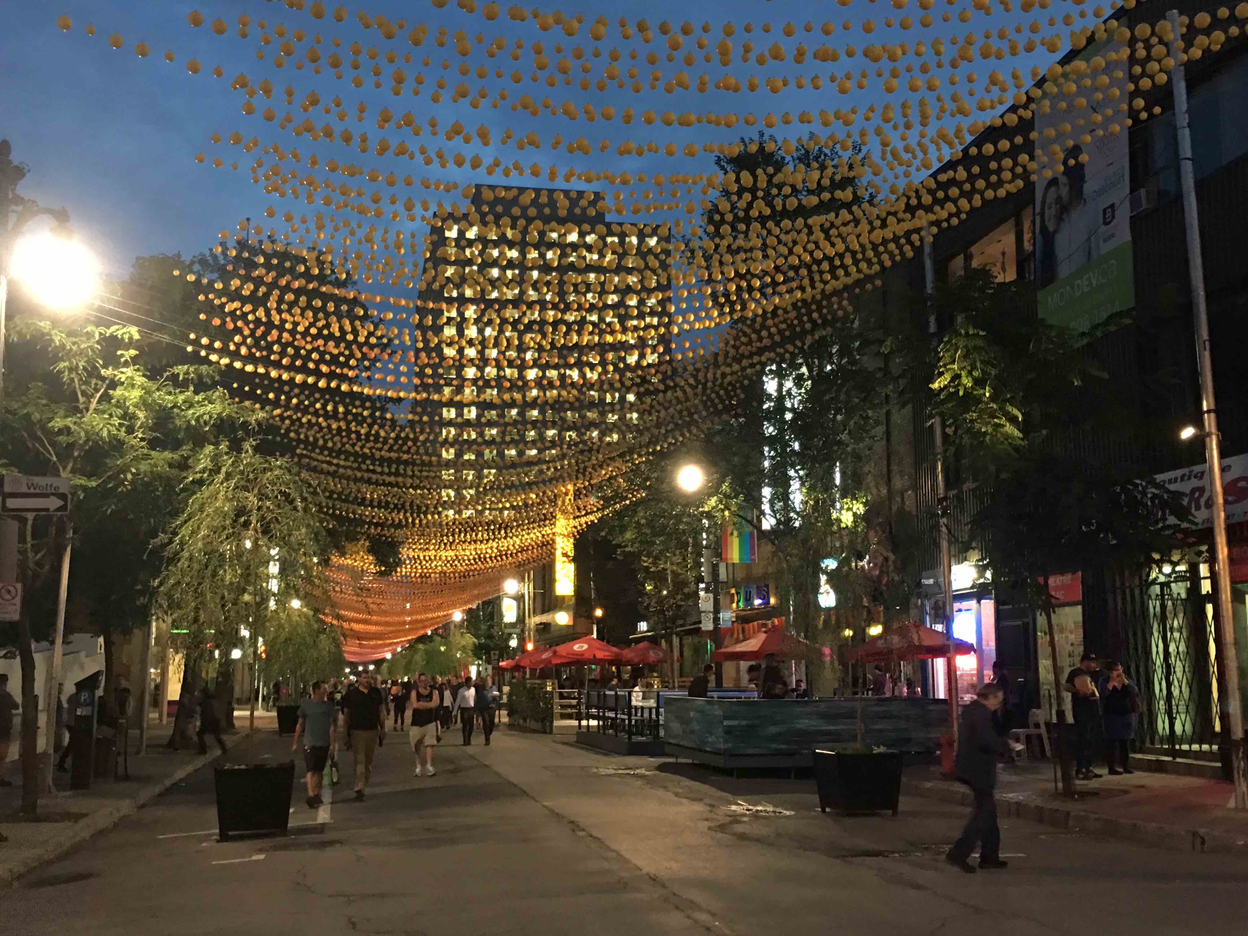 IMG_4053 Published August 25, 2017 at 4032 × 3024 in Birthday in Montréal ‘The Village’ with strings of balls as decorations