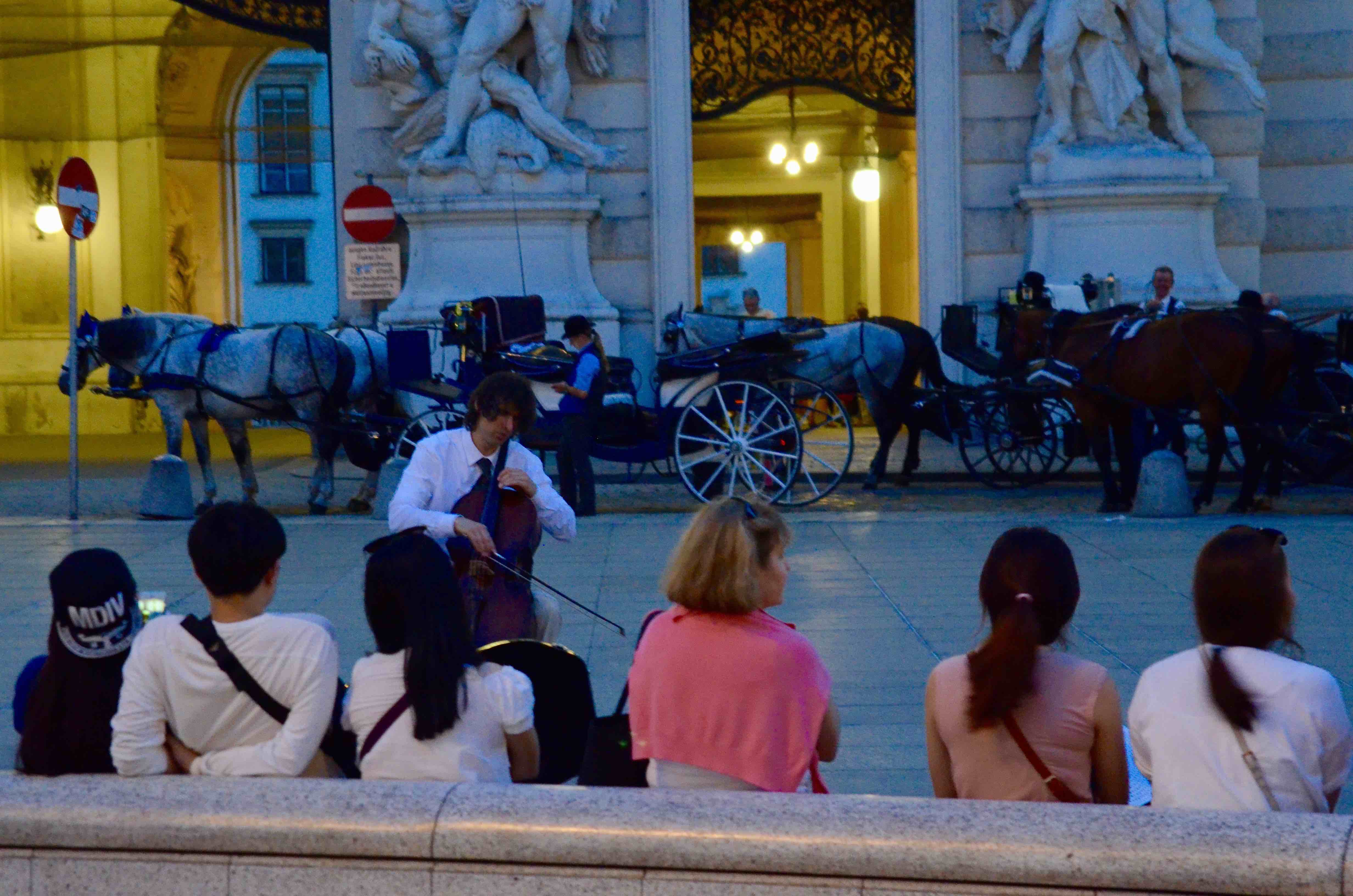 My dinner was filling, good ‘sausages’ and a cold, cold beer. Then I treated myself to a gelato (three flavours) ice-cream. Walking back past the Sisi museum I sat a listened to one of Beethoven’s compositions being played followed by a piece composed by Mozart.